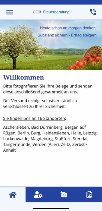 Wähle den Standort Deiner Kanzlei bei der GOB und lass die Kontaktdaten direkt von Deinem Ansprechpartner anzeigen. So ist unter anderem auch der direkte Anruf aus der App möglich.